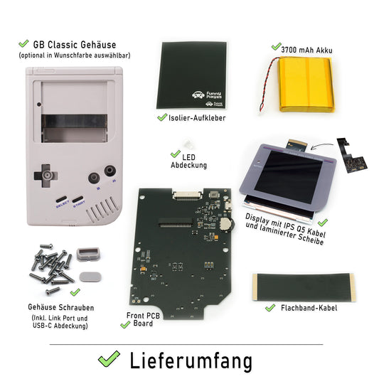 FunnyPlaying Q5 IPS Set für GameBoy Classic mit Gehäuse, Akku und USB-C Anschluss