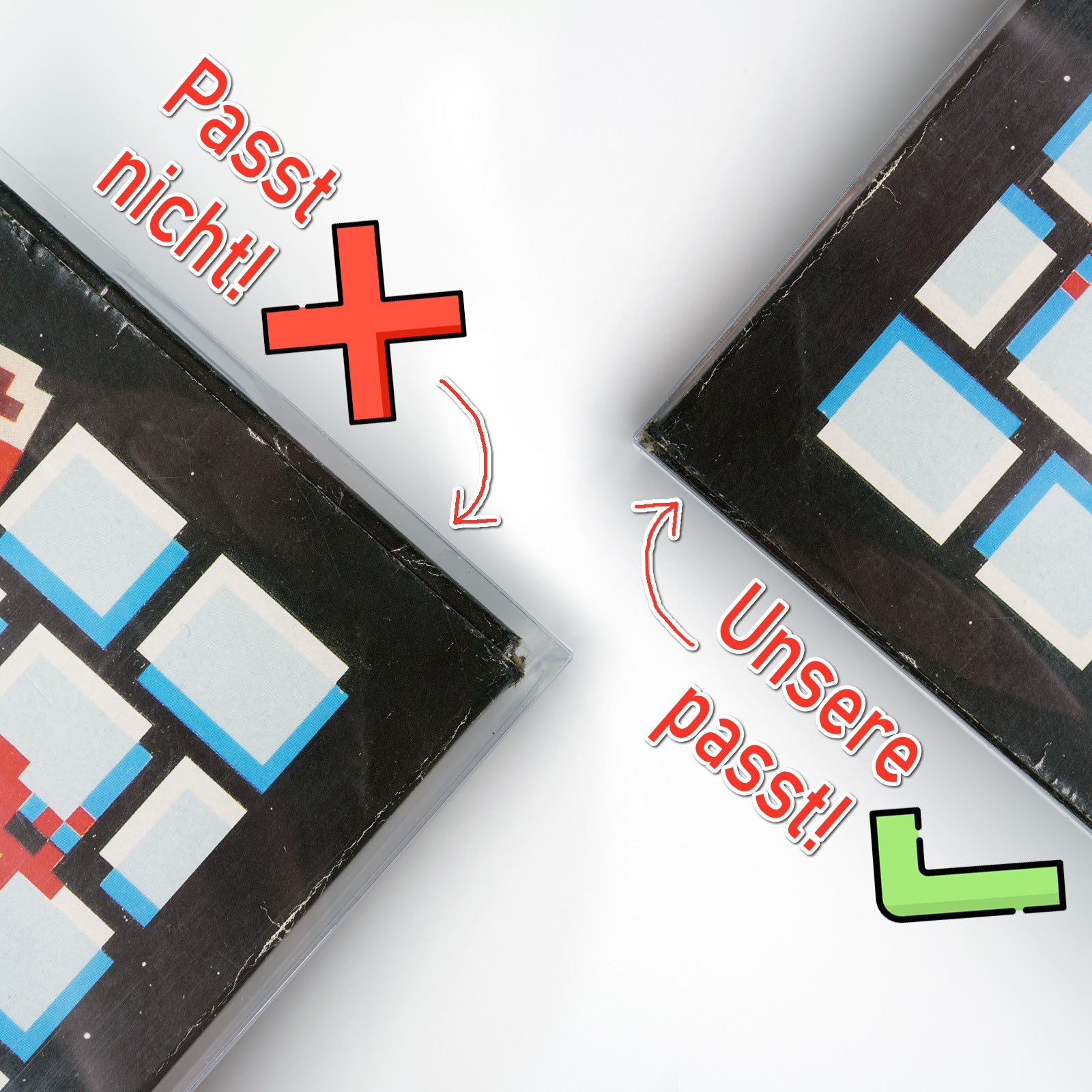 • Spiele Titel werden durch Laschen nicht verdeckt (siehe Bilder).